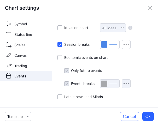 2. Enable the Session break tool from Tradingview setting options.