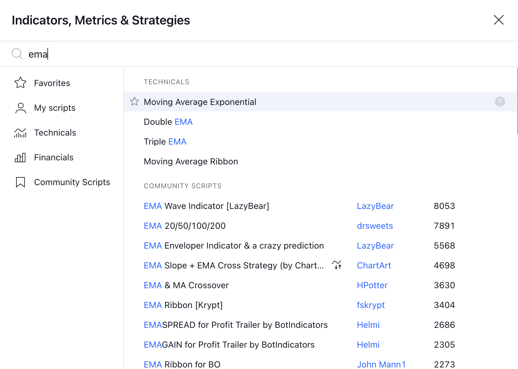 3. Enable EMA from the indicator tools and change the length to 21.